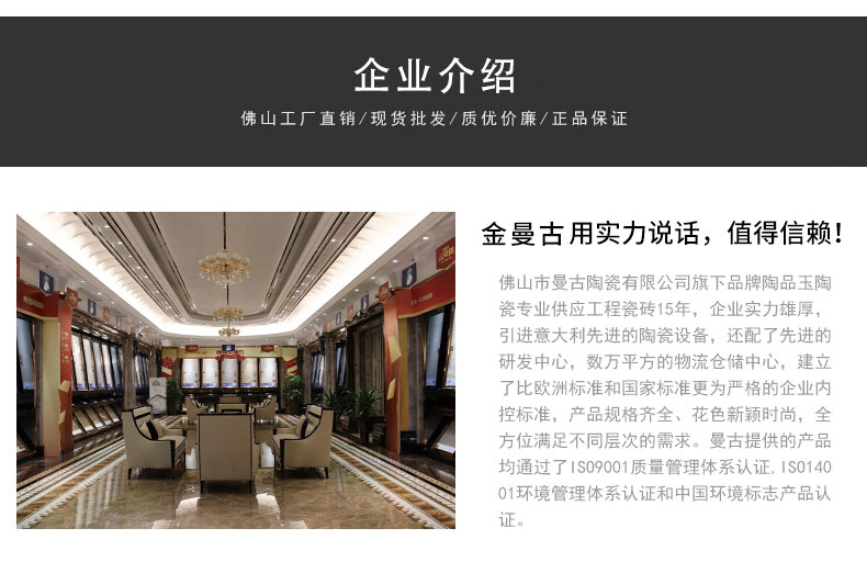 金曼古負(fù)離子瓷磚,能持續(xù)產(chǎn)生負(fù)離子,提高居室內(nèi)空氣負(fù)離子濃度,改善室內(nèi)空氣質(zhì)量,提升人體健康水平。負(fù)離子被稱為空氣維生素,負(fù)離子瓷磚創(chuàng)造安全健康的空間環(huán)境。工程用磚全拋釉地磚、通體大理石瓷磚、金剛石地磚等支持加工定做家裝瓷磚批發(fā)。