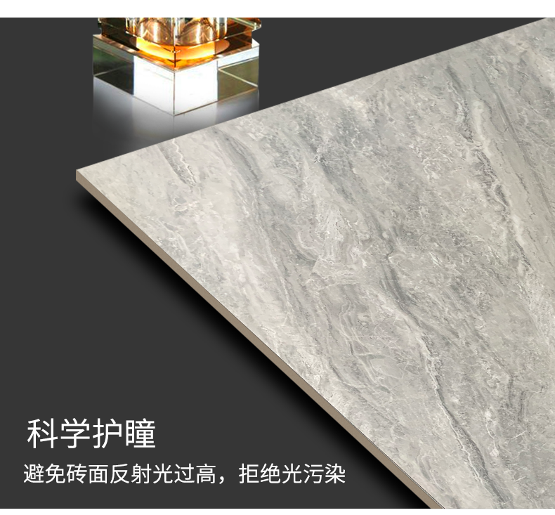 柔光瓷磚是磚面反射介于強光與弱光之間的一類瓷磚,其結合亮光類瓷磚的高調明艷裝飾和啞光類瓷磚的低調內斂搭配效果,通過動態(tài)柔光蠟拋技術,降低產品反光率,從而達到人體舒適的視覺感受以及無光污染的空間裝飾效果。優(yōu)點:1.視覺舒適,無光污染 2.堅固耐磨,不易刮花.