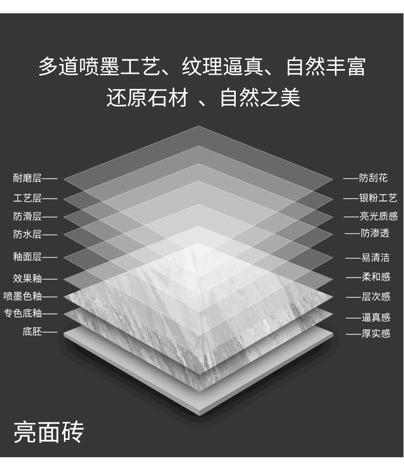 金線金粉 【產(chǎn)品介紹】航天級激光鍍金工藝,鉆石雕刻技術(shù),高溫慢燒,釉層不吸污吸水率低,真空鍍金燒成后再進行真空電鍍工藝,平整如鏡面,精拋細磨,磚面平整光滑細膩光澤度、亮度、硬度較高。立體紋理,釉下彩工藝,三次淋釉增加磚面的立體感。