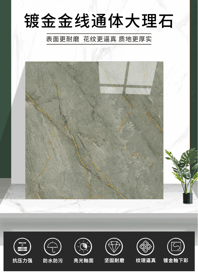 金線金粉 【產(chǎn)品介紹】航天級(jí)激光鍍金工藝,鉆石雕刻技術(shù),高溫慢燒,釉層不吸污吸水率低,真空鍍金燒成后再進(jìn)行真空電鍍工藝,平整如鏡面,精拋細(xì)磨,磚面平整光滑細(xì)膩光澤度、亮度、硬度較高。立體紋理,釉下彩工藝,三次淋釉增加磚面的立體感。