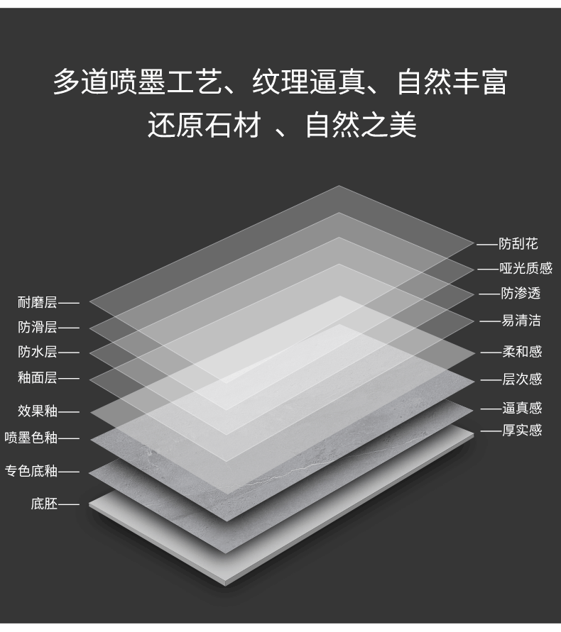 金曼古仿古地磚,采用國際先進(jìn)的超大型壓機(jī)自動成型,經(jīng)世界一流的滾筒印花和高溫煅燒而成,通過仿石、仿巖、仿木、仿布、仿金屬等多種表現(xiàn)方式,產(chǎn)品花色圖案新穎時尚,領(lǐng)先國際潮流,具有超耐磨、防滑、防污等高性能指標(biāo)。