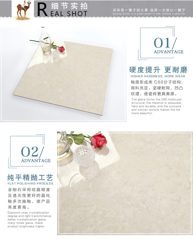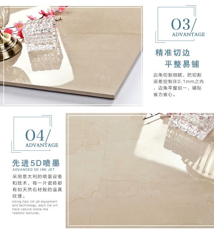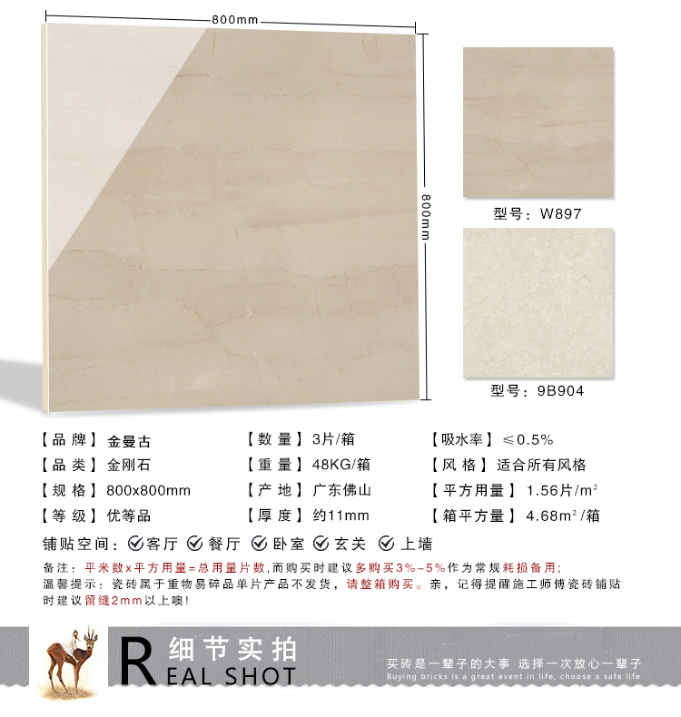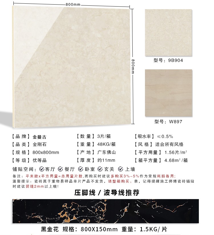 金曼古瓷磚廠家特價(jià)金剛石因高品質(zhì)而得名,是一款極具天然石材效果和微晶石質(zhì)感的仿石材瓷磚,它不但在價(jià)格、環(huán)保、耐用和清潔上極具優(yōu)勢(shì),在質(zhì)感、規(guī)格、花色、重量等指標(biāo)上,金剛石都遠(yuǎn)遠(yuǎn)勝于石材、拋光磚。相比其他種類(lèi)的產(chǎn)品,它最大的特點(diǎn)可以用“高亮度、高耐磨、高平整、高逼真、高清晰、高環(huán)保”。