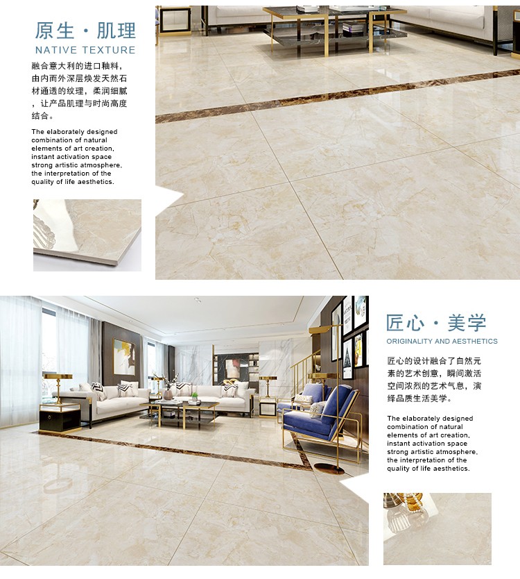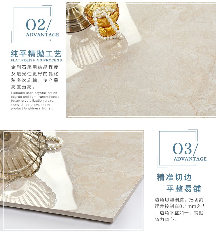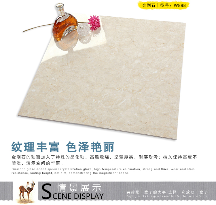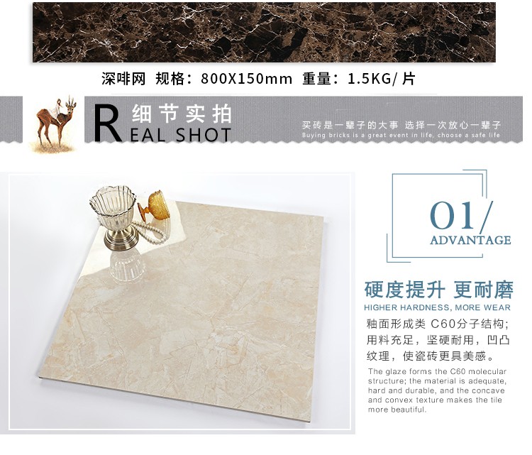 金曼古瓷磚廠家特價金剛石因高品質(zhì)而得名,是一款極具天然石材效果和微晶石質(zhì)感的仿石材瓷磚,它不但在價格、環(huán)保、耐用和清潔上極具優(yōu)勢,在質(zhì)感、規(guī)格、花色、重量等指標上,金剛石都遠遠勝于石材、拋光磚。相比其他種類的產(chǎn)品,它最大的特點可以用“高亮度、高耐磨、高平整、高逼真、高清晰、高環(huán)?!?。