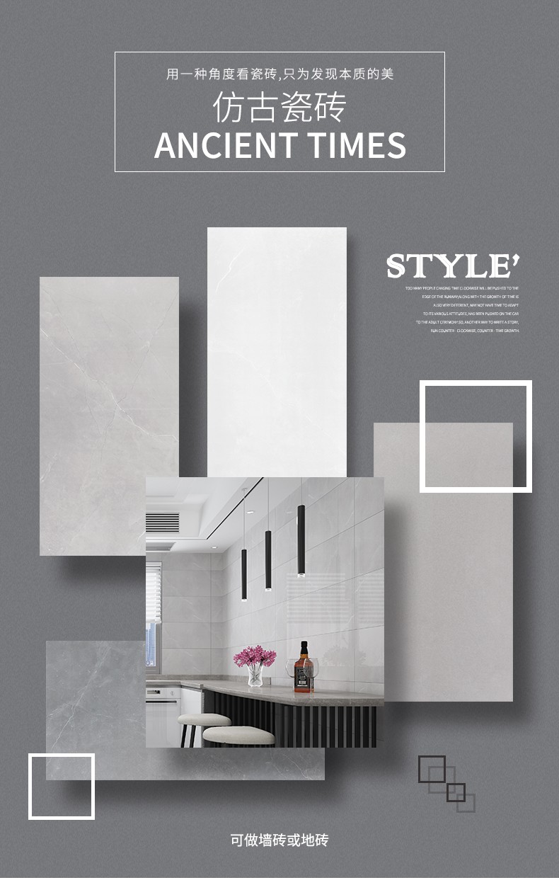 金曼古墻地磚,適用于洗手間、廚房、室外陽臺(tái)的立面裝飾,是保護(hù)墻面免遭水濺的有效途徑。它們不僅用于墻面,用在門窗的邊緣裝飾上,也是一種有趣的裝飾元素。用于踢腳線處的裝飾墻磚,既美觀又保護(hù)墻基不易被鞋或桌椅凳腳弄臟。