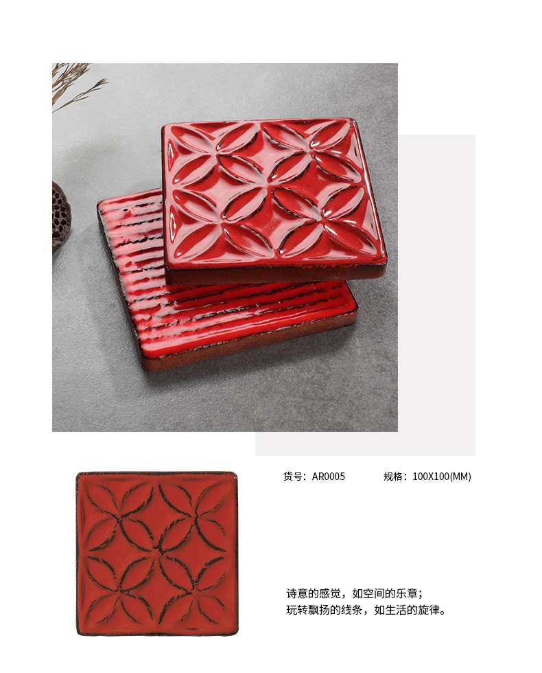 窯變方形紅色磚