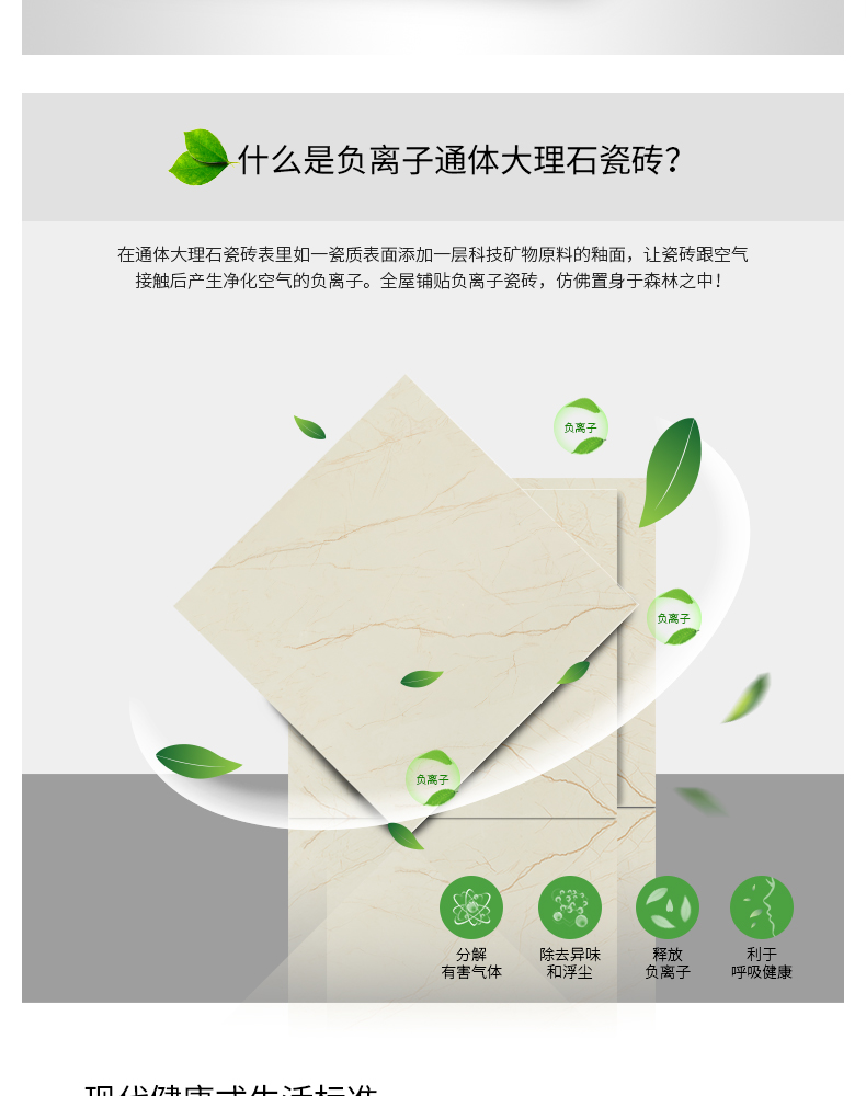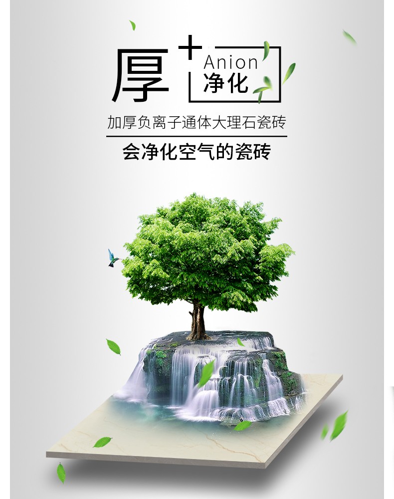 金曼古負(fù)離子瓷磚,能持續(xù)產(chǎn)生負(fù)離子,提高居室內(nèi)空氣負(fù)離子濃度,改善室內(nèi)空氣質(zhì)量,提升人體健康水平。負(fù)離子被稱(chēng)為空氣維生素,負(fù)離子瓷磚創(chuàng)造安全健康的空間環(huán)境。工程用磚全拋釉地磚、通體大理石瓷磚、金剛石地磚等支持加工定做家裝瓷磚批發(fā)。
