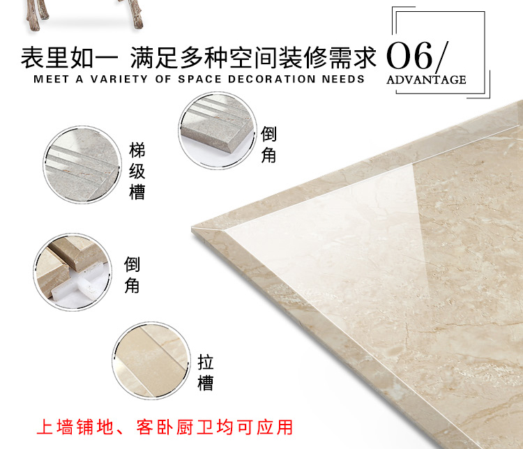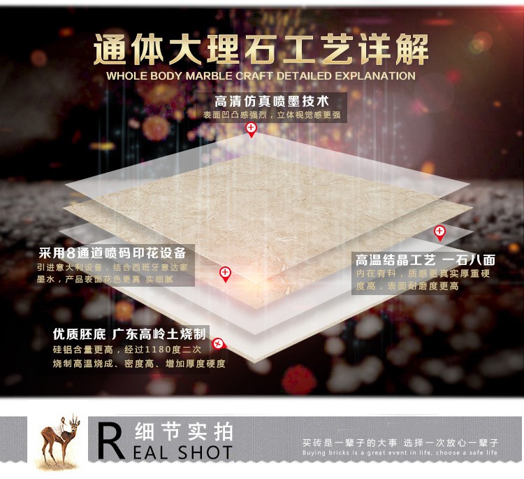 通體大理石瓷磚,即是大理石瓷磚的一種,亦是一種拋釉磚坯經(jīng)過拋光工序之后形成的瓷磚,只不過通體大理石瓷磚更加注重對瓷磚磚坯的塑造,其原本原理也是在大理石瓷磚基礎(chǔ)上,加類似于瓷磚表面紋理的磚坯組合而成的瓷磚產(chǎn)品。另外,現(xiàn)階段各種傳統(tǒng)單純釉面的大理石瓷磚產(chǎn)品已經(jīng)開始泛濫,而通體大理石瓷磚的出現(xiàn)無疑又是給已經(jīng)乏力的大理石瓷磚市場注入新的活力.應用廣,市場大.