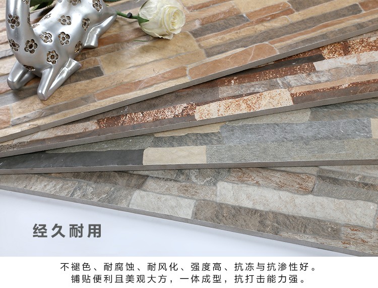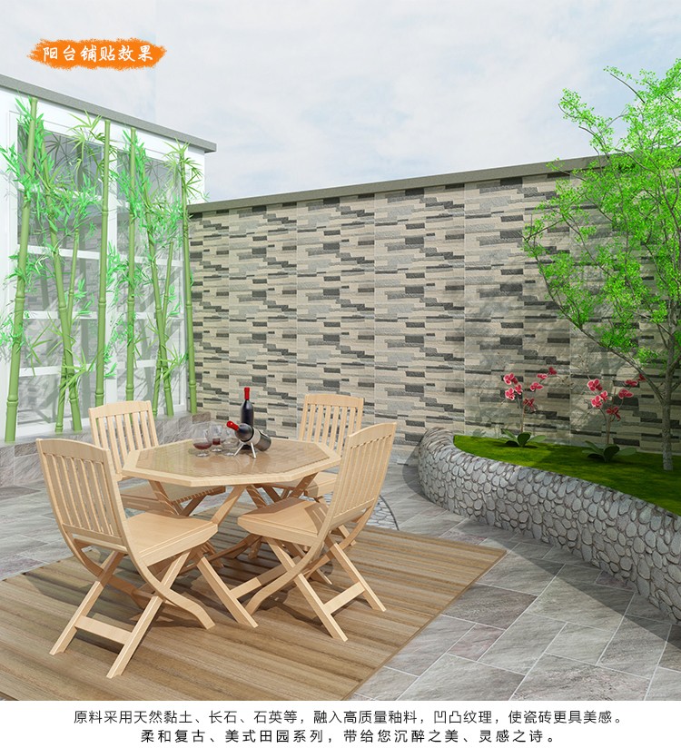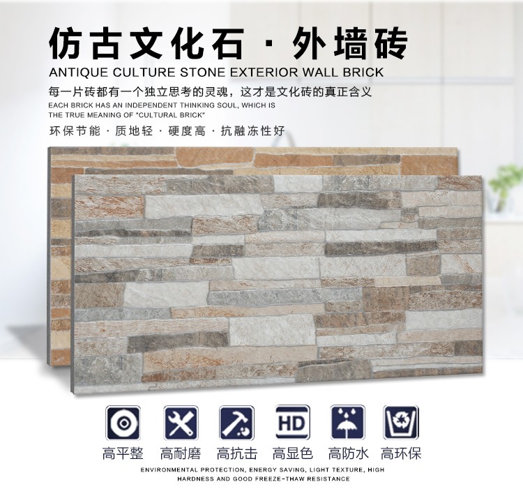 金曼古墻磚,適用于洗手間、廚房、室外陽臺(tái)的立面裝飾,是保護(hù)墻面免遭水濺的有效途徑。它們不僅用于墻面,用在門窗的邊緣裝飾上,也是一種有趣的裝飾元素。用于踢腳線處的裝飾墻磚,既美觀又保護(hù)墻基不易被鞋或桌椅凳腳弄臟。