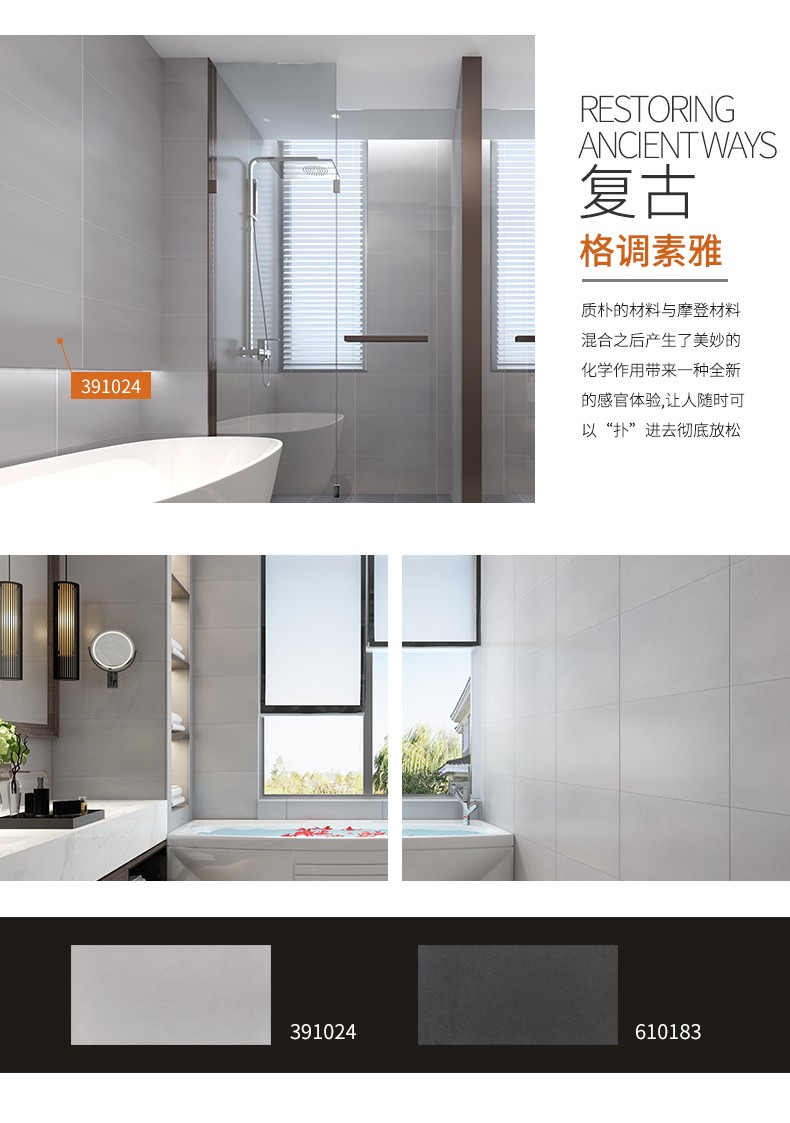 金曼古墻地磚,適用于洗手間、廚房、室外陽臺(tái)的立面裝飾,是保護(hù)墻面免遭水濺的有效途徑。它們不僅用于墻面,用在門窗的邊緣裝飾上,也是一種有趣的裝飾元素。用于踢腳線處的裝飾墻磚,既美觀又保護(hù)墻基不易被鞋或桌椅凳腳弄臟。