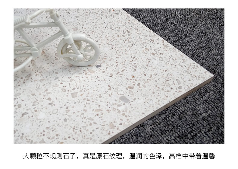 大尺寸水磨石防滑耐磨,應(yīng)用于公共場合更具優(yōu)勢,自然簡約的紋理,百搭適用性廣,水磨石里面大顆粒,不規(guī)則的石子花紋,很有不確定的隨機美感。始于顏值/陷于工藝/忠于品質(zhì)!