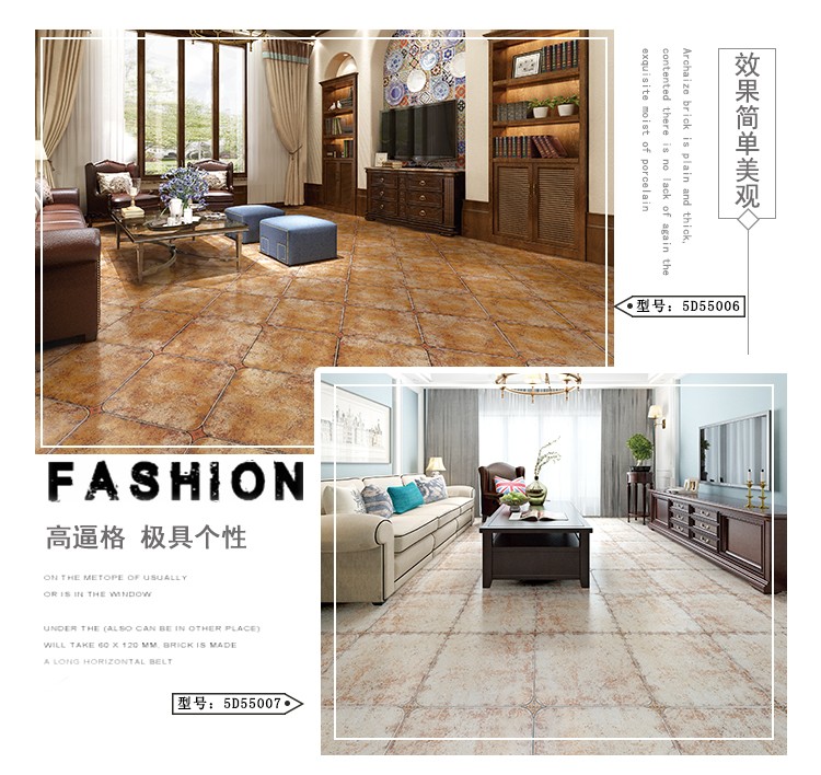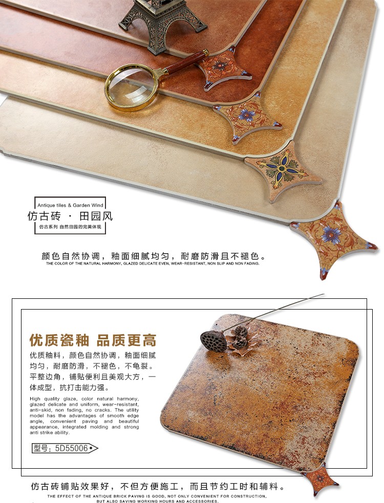 金曼古仿古地磚,采用國際先進的超大型壓機自動成型,經(jīng)世界一流的滾筒印花和高溫煅燒而成,通過仿石、仿巖、仿木、仿布、仿金屬等多種表現(xiàn)方式,產(chǎn)品花色圖案新穎時尚,領先國際潮流,具有超耐磨、防滑、防污等高性能指標。
