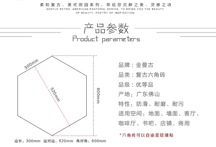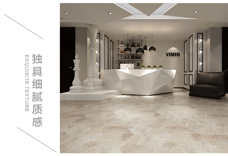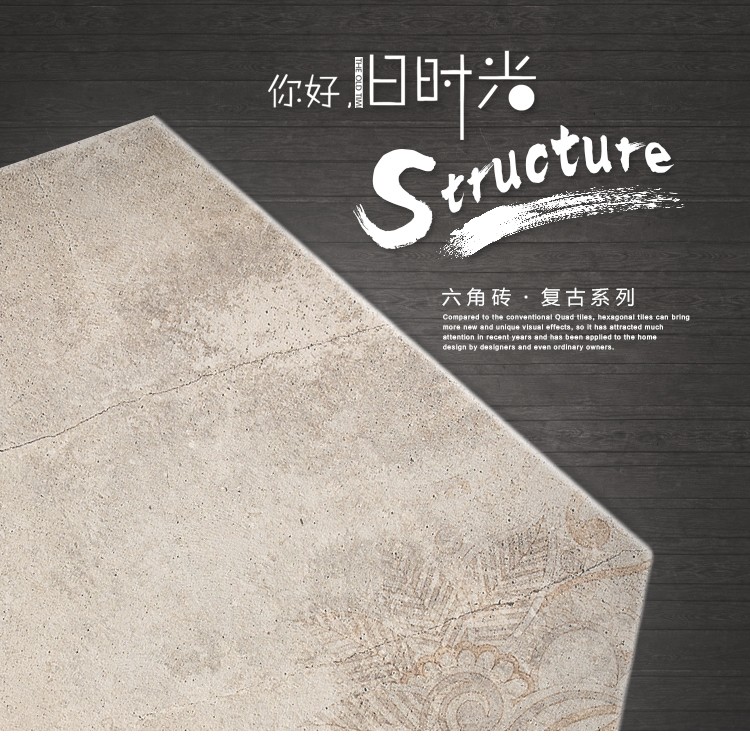 金曼古瓷磚廠家六角磚是一種表面呈現(xiàn)木紋裝飾圖案的環(huán)保建材.紋路逼真、自然樸實、沒有木地板褪色、不耐磨等缺點;曼古陶瓷木紋磚系列線條明快,圖案清晰為特色。本身具有阻燃,不腐蝕的特點,綠色、環(huán)保型建材;產(chǎn)品使用壽命長,耐磨,無需像木制產(chǎn)品那樣周期性地打蠟保養(yǎng)等。